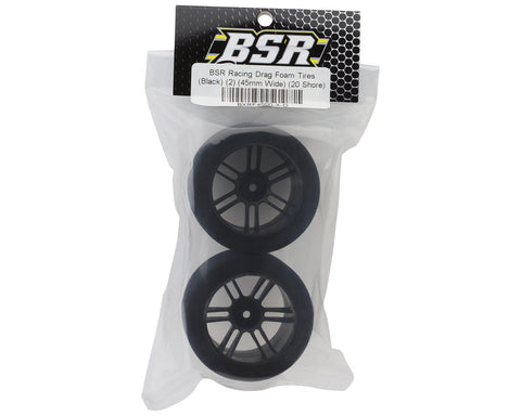 BSR Racing Drag Foam Tires are an excellent choice for a high performance foam drag racing tire. Pre-Mounted on black carbon spoke wheels. Package includes two pre-mounted tires.