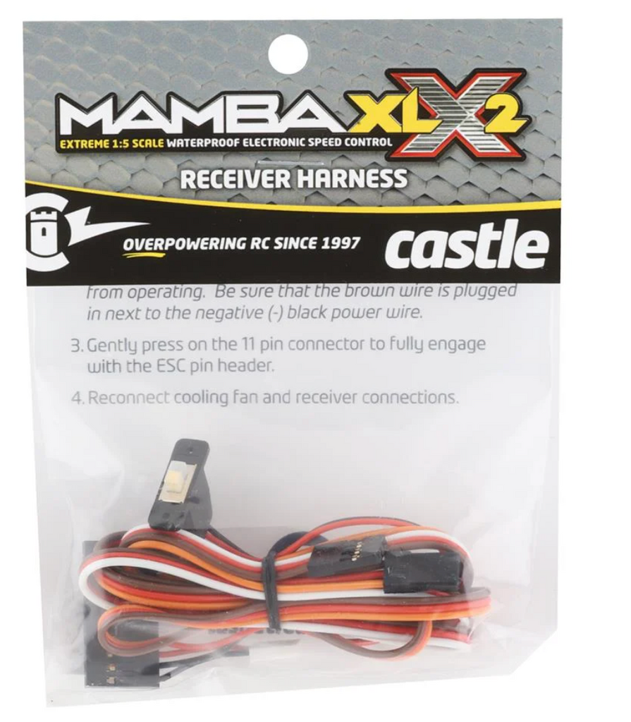 Castle Creations Mamba XLX 2 Receiver Harness. This is the factory replacement harness with switch, receiver and auxiliary connectors.
