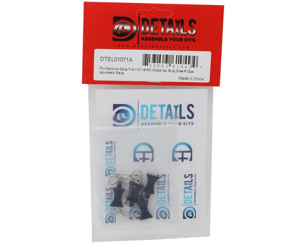 The Hobby Details Pro Aluminum Easy Pull 1/10 & 1/8 Body Clips combine durability, convenience, and style for an effortless RC body mounting experience. Featuring robust aluminum pull handles, these clips provide a firm grip, making removal and installation quick and easy, even in cold or wet conditions. Their lightweight design ensures minimal impact on performance, while the anodized finish enhances corrosion resistance and adds a sleek, personalized touch. Available in a variety of colors, these premium body clips offer a reliable hold and an instant upgrade over standard clips.