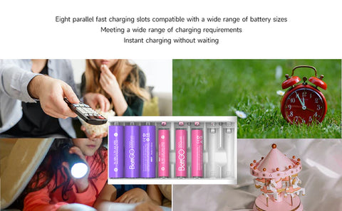 ⚡⚡【Independent multi-channel fast charging】Independent multi-channel fast charging with larger current, maximum 1A current output per slot, 1500mah AA/AAA battery can be fully charged in just 1.5H fast charging.