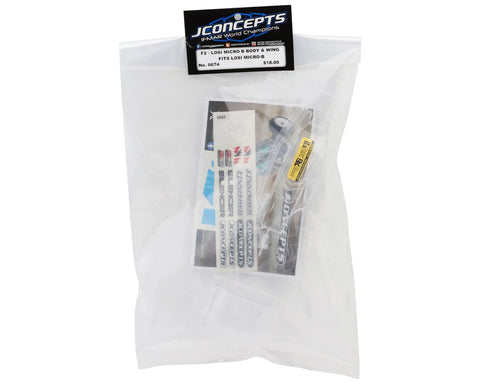 The JConcepts Losi Micro-B "F2" Body with Wing is a high-performance upgrade designed to enhance both the aerodynamics and handling of the Losi Micro-B buggy. Inspired by the original Finnisher bodies, the F2 features an aggressive, forward-cab design that improves steering response and rotation, especially in low-traction conditions. Its increased windshield angle helps stabilize the buggy during jumps, counteracting mid-air wind gusts for more controlled landings. The streamlined side-pods and JC chamfered edges reduce unwanted height changes, ensuring smooth and neutral handling at high speeds.
