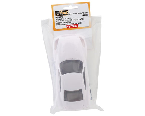 Kyosho Mini-Z MA-020 GT-R R35 Body with Wheels. This is an optional body intended for use on the Kyosho Mini-Z AWD MA-020 platforms. The body and accessories are unpainted and ready for your own custom paint scheme and personalized touch.