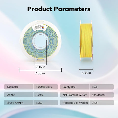 PLA Matte Triple Filament 1.75mm, 1KG/2.2LB