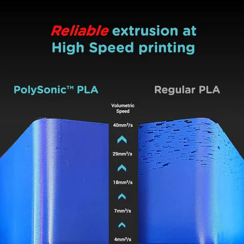 PolySonic™ PLA Pro is a tough PLA that can print at incredible speeds. With its advanced formulation, this filament ensures durable, rugged prints, with an impact strength similar to ABS and bending strength outperforming ASA & PETG. When time is of the essence for functional parts, PolySonic™ PLA Pro is the ideal choice for you.