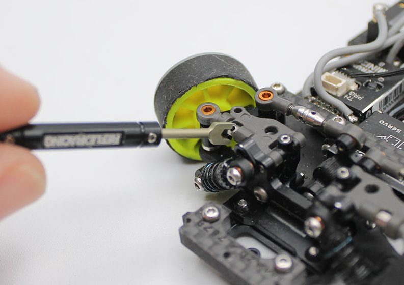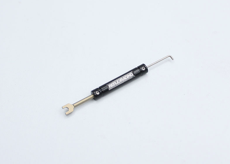 Sometimes it's the simple things that make us happy and this little tool does just that. On one side with a spanner and another side a 0.9mm L bend Wire that allow you to adjust your upper arm and steering turnbuckles on your RX28 as well as your Ball Differential.