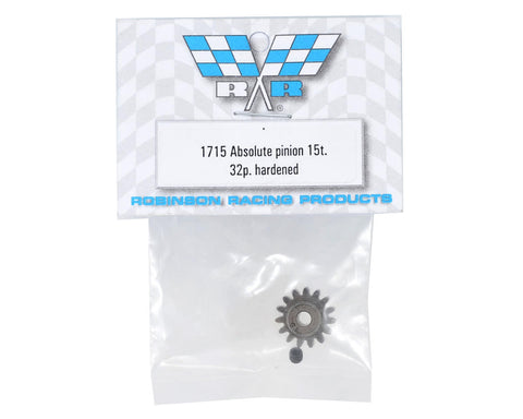 Robinson Racing Absolute 32 Pitch Hardened Pinion Gears are built to last, and are best suited for use with Robinson steel spur gears. They feature an 1/8 inch bore, a 32 pitch tooth profile, with the tooth number stamped on the side for easy identification. Choose from multiple options to fine tune the gear ratio of your vehicle. Package includes one gear and one 5-40 set screw.