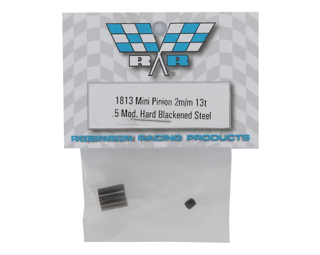 This is a Robinson Racing Mini 8IGHT Hard Steel .5 Mod Mini Pinion with a 2mm Bore. Compatible with 2mm motor shaft, .5 Mod applications, these hardened steel motor pinions are precision machined and stamped with the number of teeth. One 5-40 set screw included. Use the pull down menu above to select the tooth count