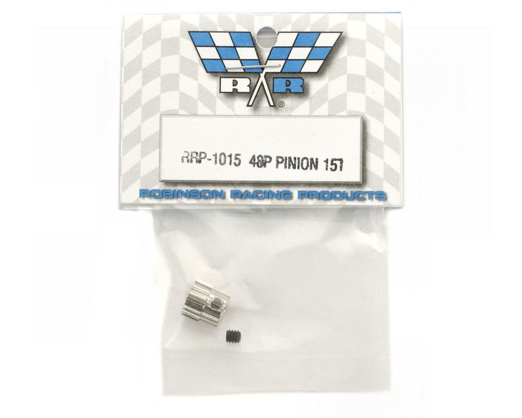 These Robinson Racing Products 48 Pitch Pinion Gears are precision cut alloy steel gears that feature a hard nickel coating for durability. The pinions have an 1/8" bore, are stamped with the tooth number for easy identification and include one 5-40 set screw. These gears are available in a variety of tooth count options to fine tune the torque and top speed of your vehicle.