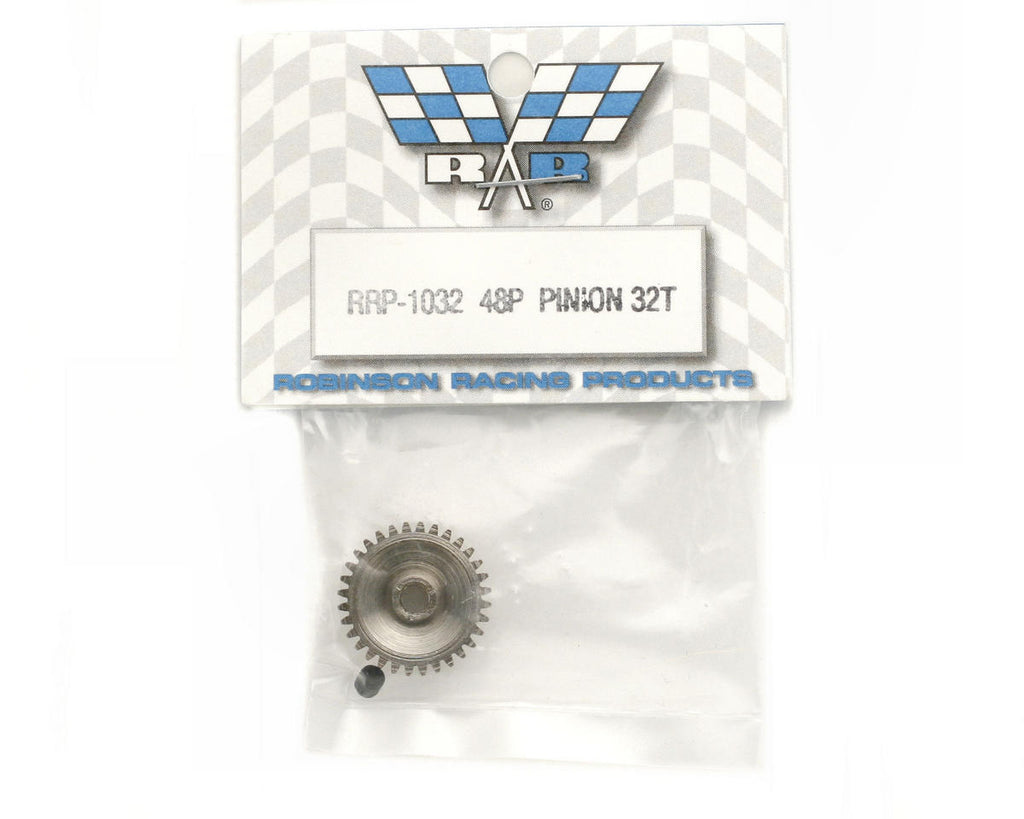 These Robinson Racing Products 48 Pitch Pinion Gears are precision cut alloy steel gears that feature a hard nickel coating for durability. The pinions have an 1/8" bore, are stamped with the tooth number for easy identification and include one 5-40 set screw. These gears are available in a variety of tooth count options to fine tune the torque and top speed of your vehicle.