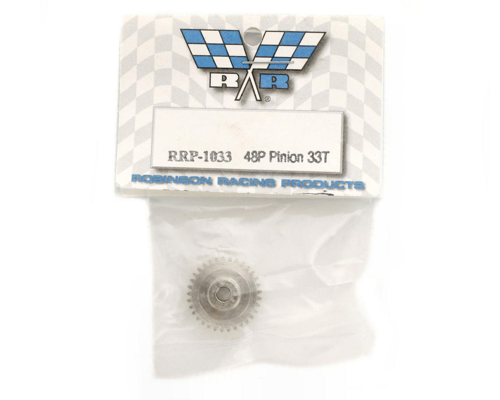 These Robinson Racing Products 48 Pitch Pinion Gears are precision cut alloy steel gears that feature a hard nickel coating for durability. The pinions have an 1/8" bore, are stamped with the tooth number for easy identification and include one 5-40 set screw. These gears are available in a variety of tooth count options to fine tune the torque and top speed of your vehicle.