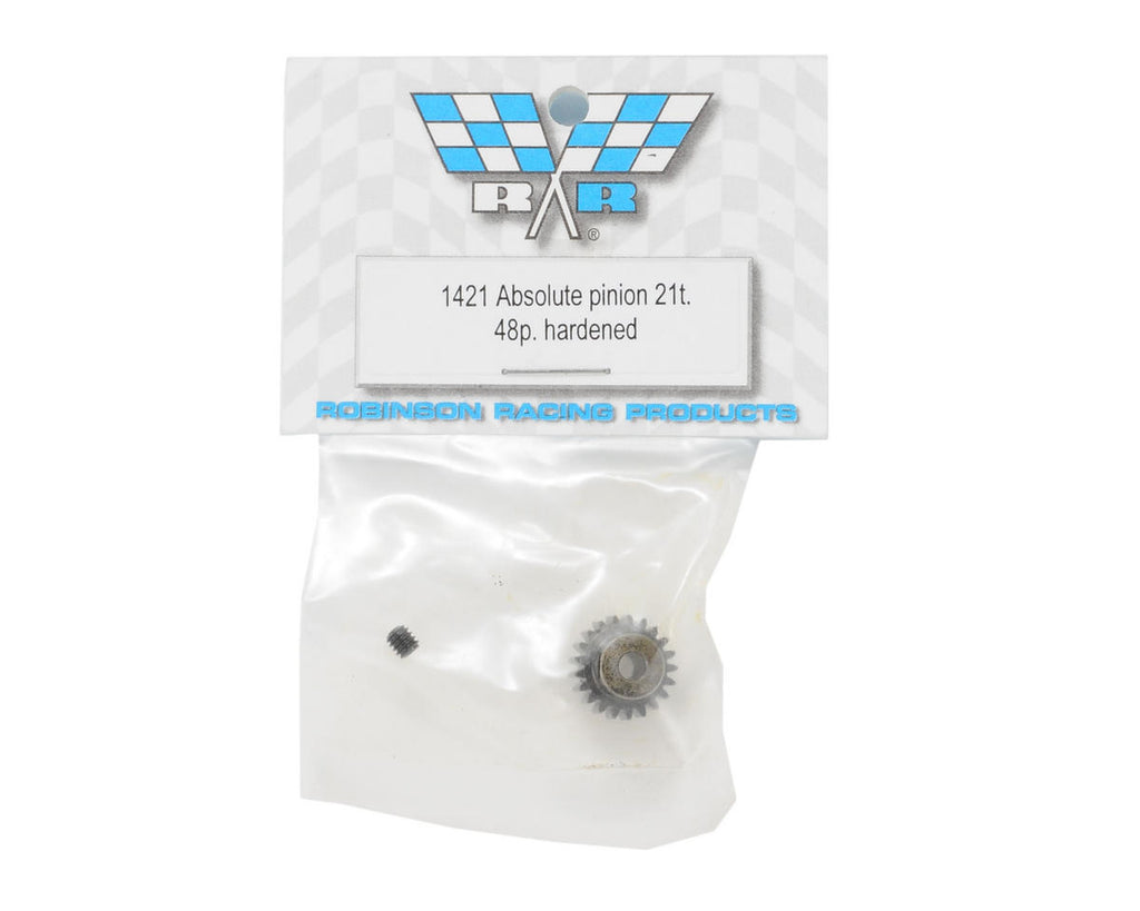 Super hard, heat treated, "Absolute" pinion gears are a must for using with steel spur gears, and will last and last if used with plastic spur gears.