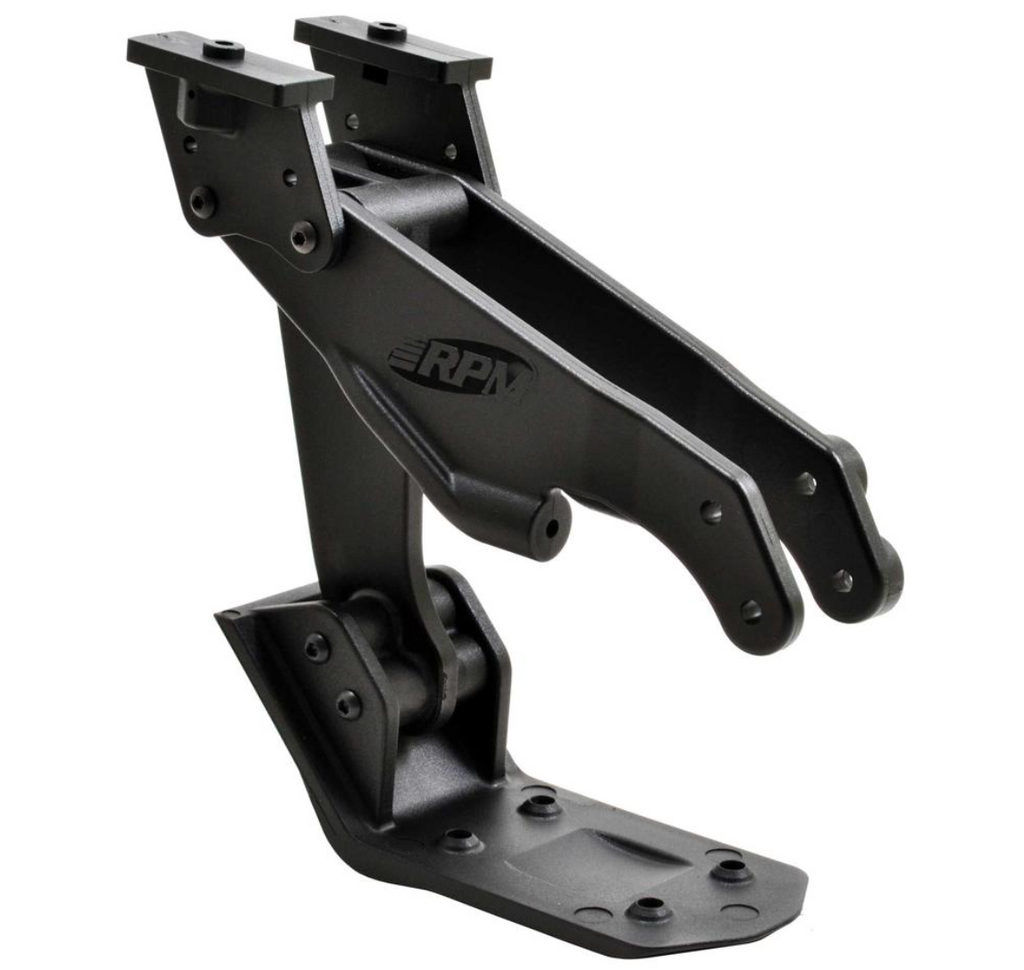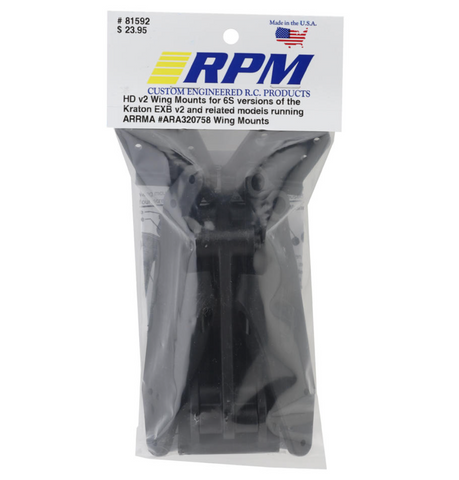 RPM Arrma Kraton 6S EXB V2 HD Wing Mount Set. Molded in RPM proven tough blend of engineering grade nylons with a skid plate that incorporates mounting points for a vertical brace, this optional wing mount is intended for the Arrma Kraton 6S EXB V2 platforms to tremendously boost the durability of you Kraton 6S and provide much needed protection to the rear end.
