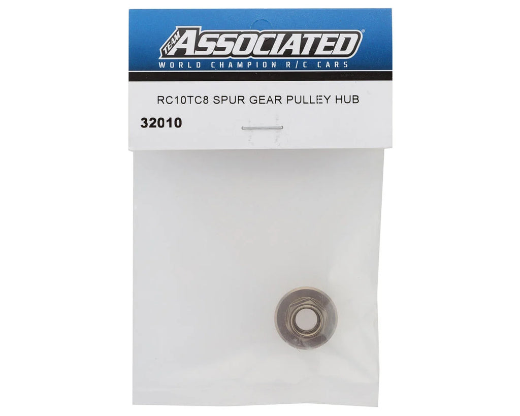 Team Associated RC10TC8 Spur Gear Pulley Hub Nut. This replacement spur gear pulley hub is intended for the RC10TC8 platforms.