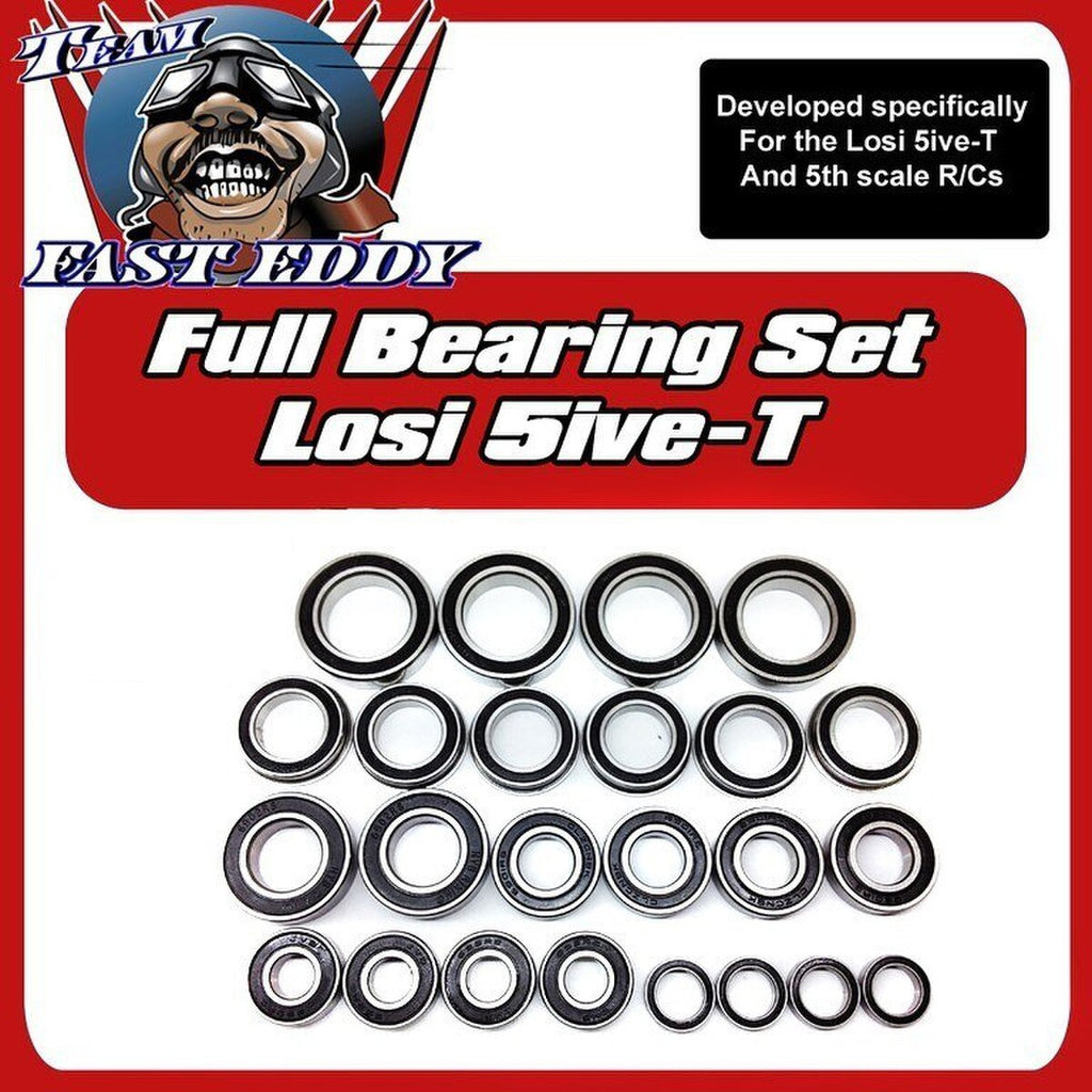 Full Replacement Bearing Set for the Losi 5ive-T Team FastEddy has followed tradition and now offers a High Quality Replacement Bearing Set for the Losi 5ive-T This kit includes ALL the bearings you will need to maintain the health of your Losi 5ive-T. When its QUALITY you are looking for, Team FastEddy has what you need. 1306-TFE