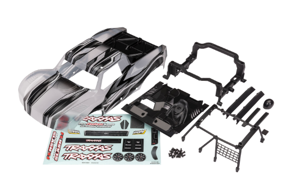 The Mini Maxx ProGraphix body comes fully trimmed and ready to paint with decal sheet, pre-applied overspray film, and clipless body latches with hardware.